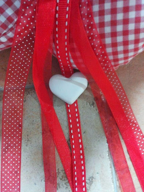 ♥ Cuore di legno ( fatto a mano) con decorazioni in gesso ceramico e stoffa